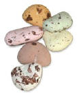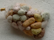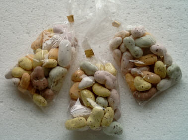 Dragees in Kieselsteinform, gefüllt mit Aprikosen in weißer