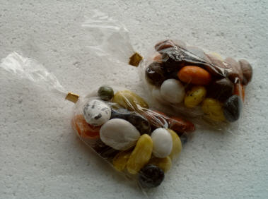 Dragees in Kieselsteinform 6-fach sortiert, gefüllt mit Rosinen,