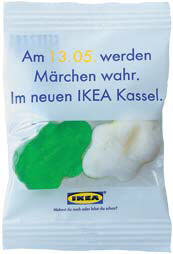 in Werbetütchen aus transparenter oder weißer OPP-Folie.