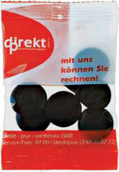 auf das Werbetütchen, auch mehrfarbig, gedruckt werden.