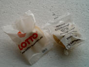 einem eingebackenen Papierzettelchen (bedruckt mit Standardtexten oder